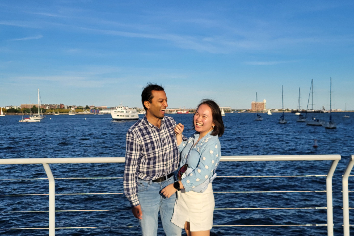 Sumit and Ngoc met in Cambridge. They discovered common interests in outdoor activities and scientific inquiry, and appreciated each other's rich heritage. Seeing how they can build harmony together, they decided to get married.